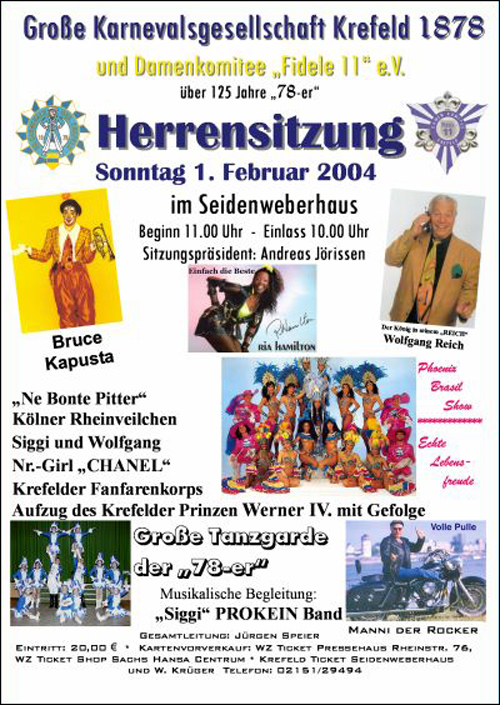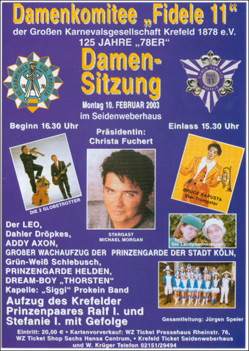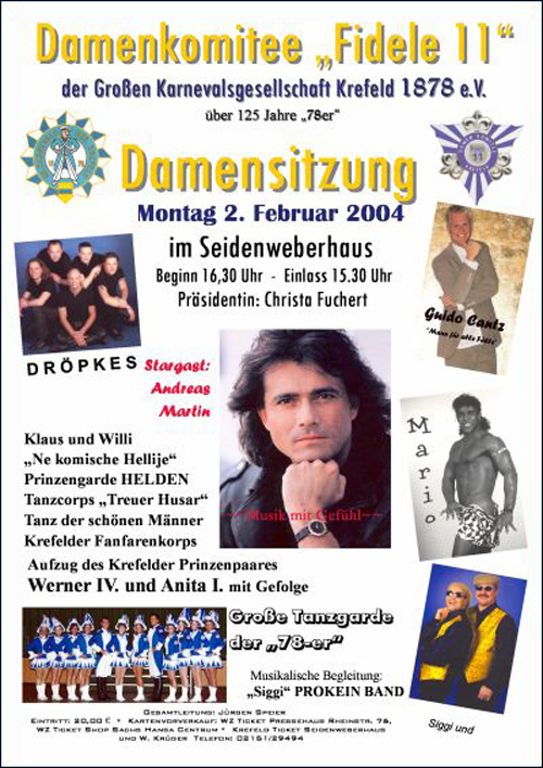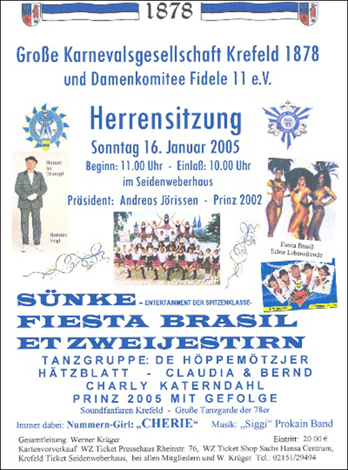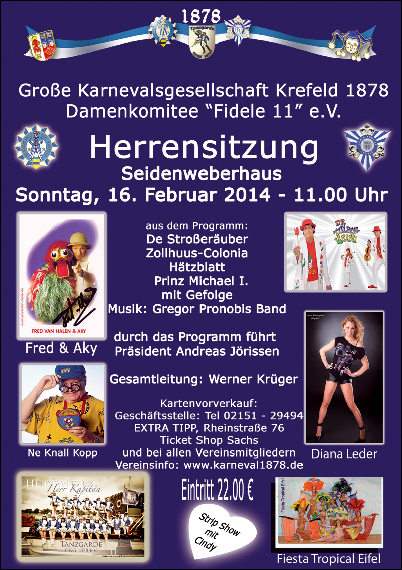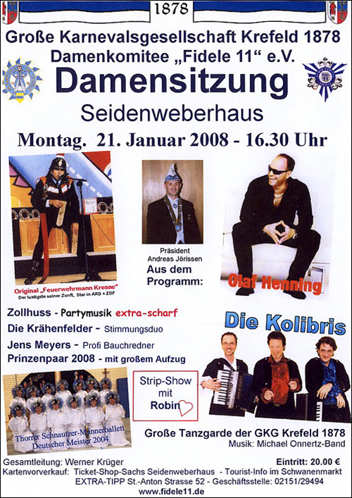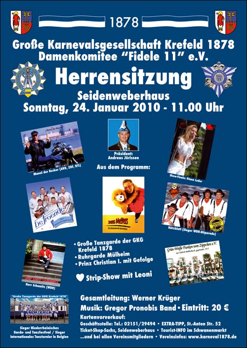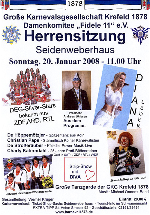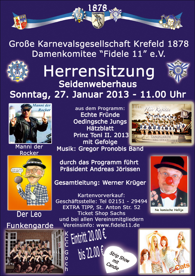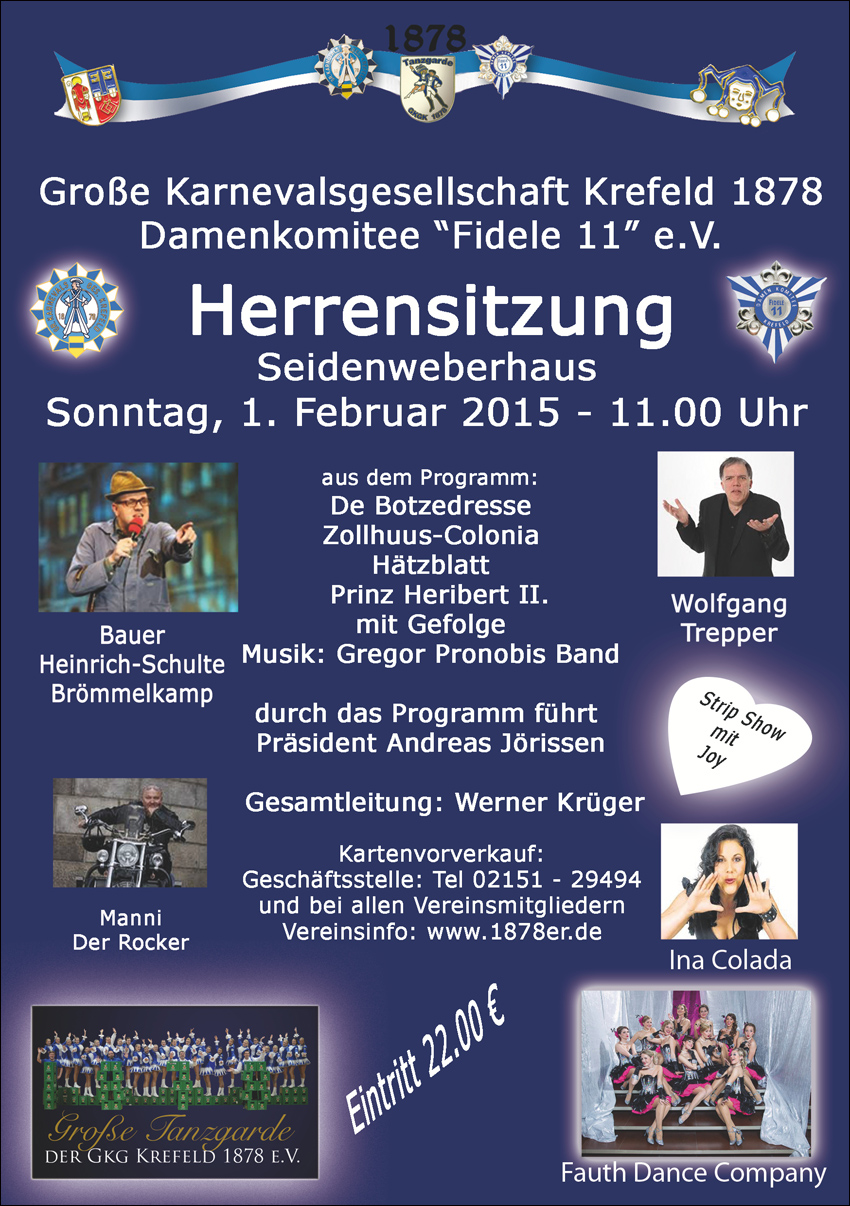 Hier finden Sie einen Überblick des Programms der Damensitzungen und Herrensitzungen unserer Gesellschaft im Seidenweberhaus.