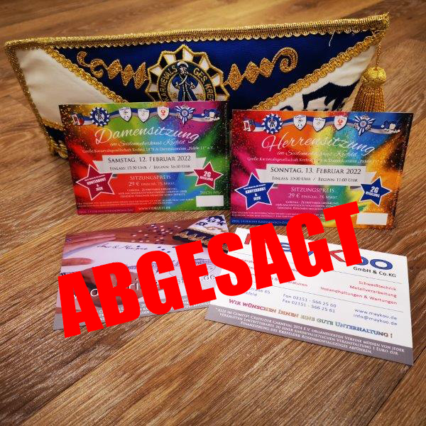 Die bisherigen Kartenbestellungen für beide Sitzungen in 2021 werden auf das Jahr 2022 verschoben.