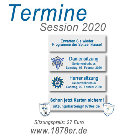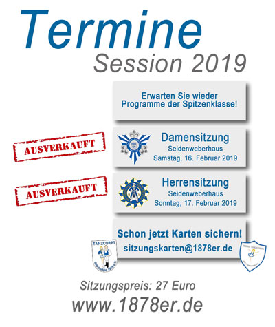 Wir freuen uns sehr über den hohen Zuspruch an unseren Sitzungen und den raschen Kartenverkauf. Heute dürfen wir verkünden, das die Damensitzung am 16.02.2019, sowie die Herrensitzung am 17.02.2019 restlos ausverkauft sind.
